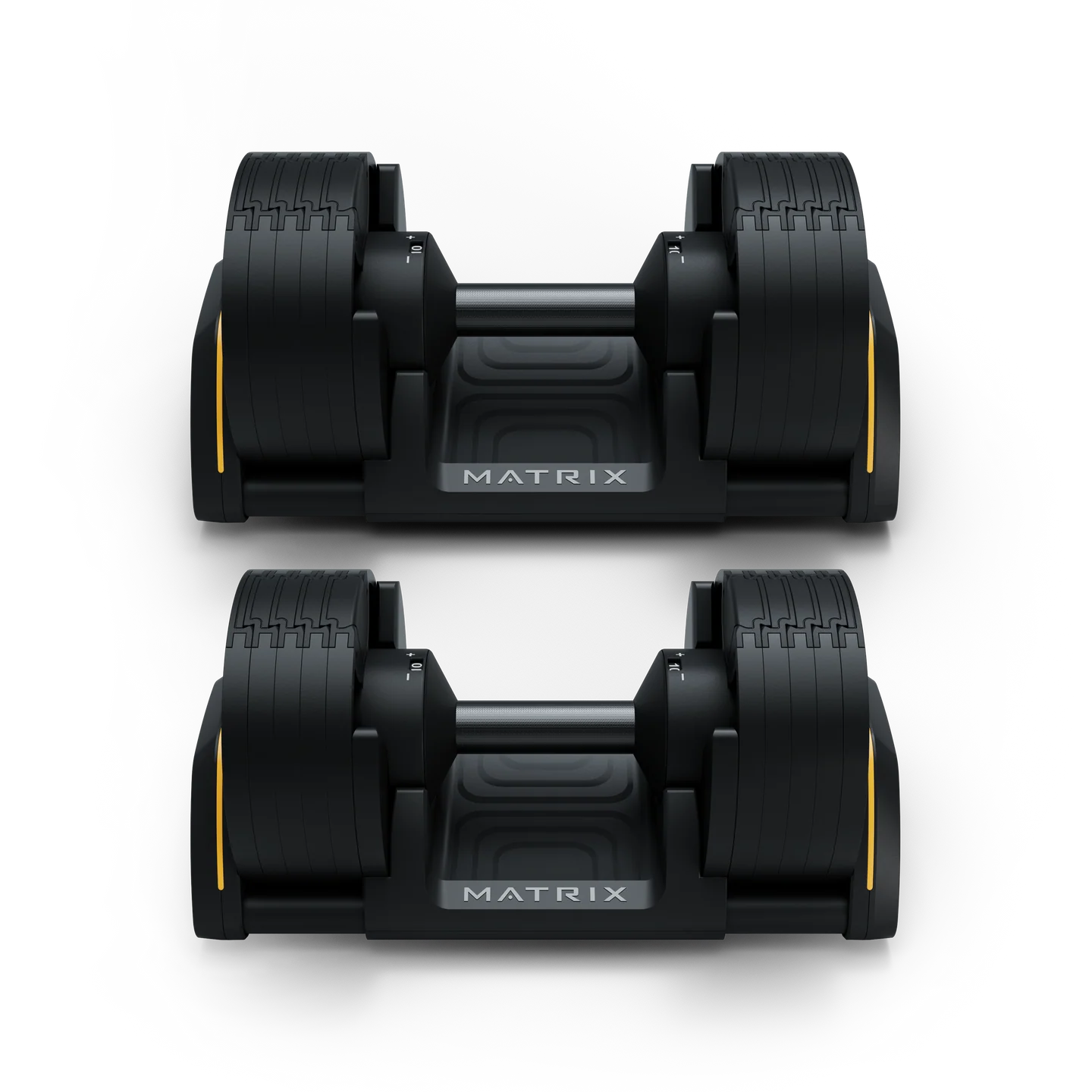 No matter how you train, our adjustable dumbbells make getting a complete workout smoother than you ever imagined. Simply twist the handle and feel the click to set your weight, and count on precision engineering to keep every rep balanced. An ingenious nesting design means our dumbbells can replace up to 10 traditional pairs to fit your space beautifully.