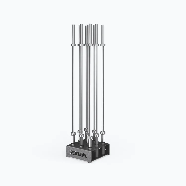 Overview The Olympic Bar Storage keeps up to 9 bars arranged vertically to save floor space and keep busy commercial gyms organised and clutter-free.