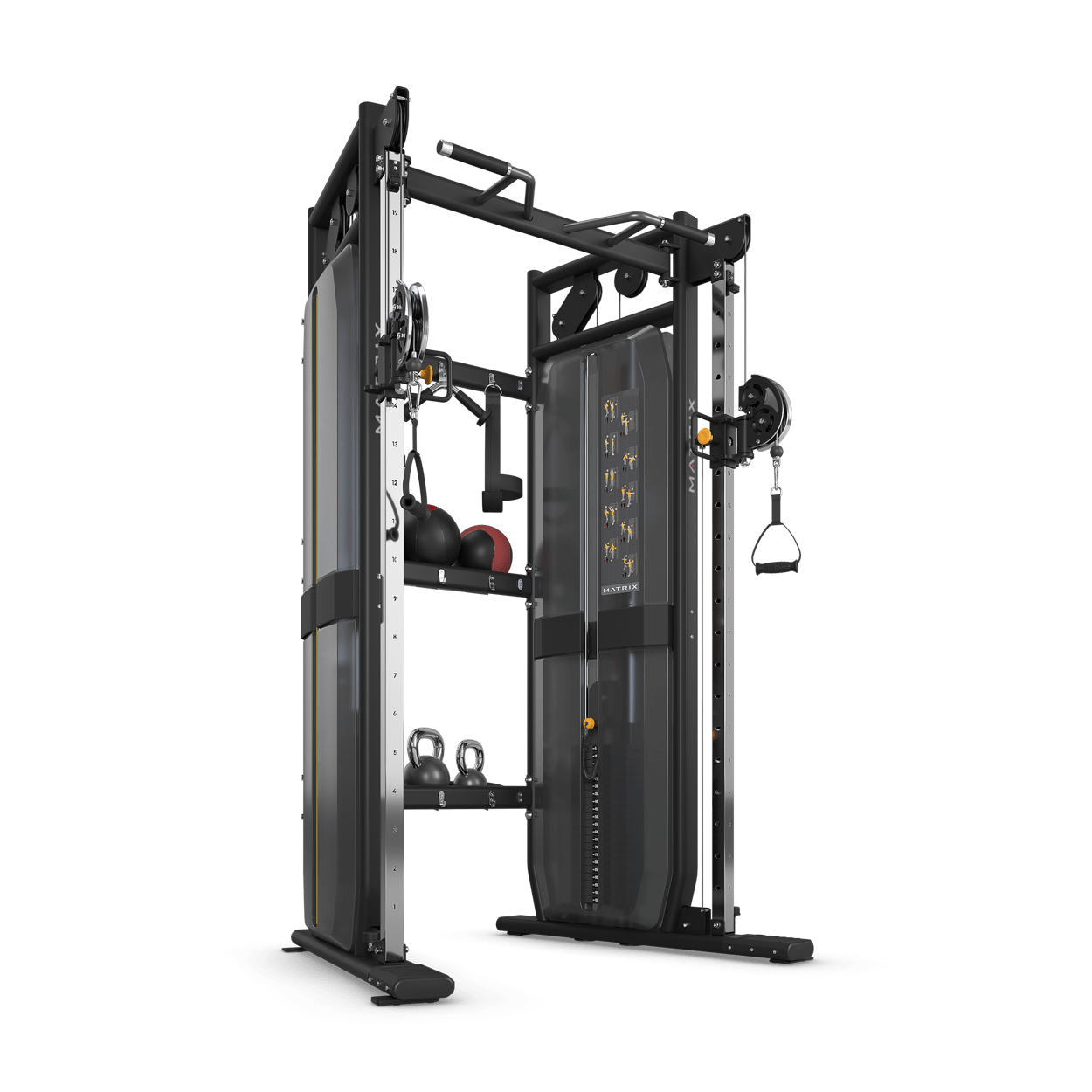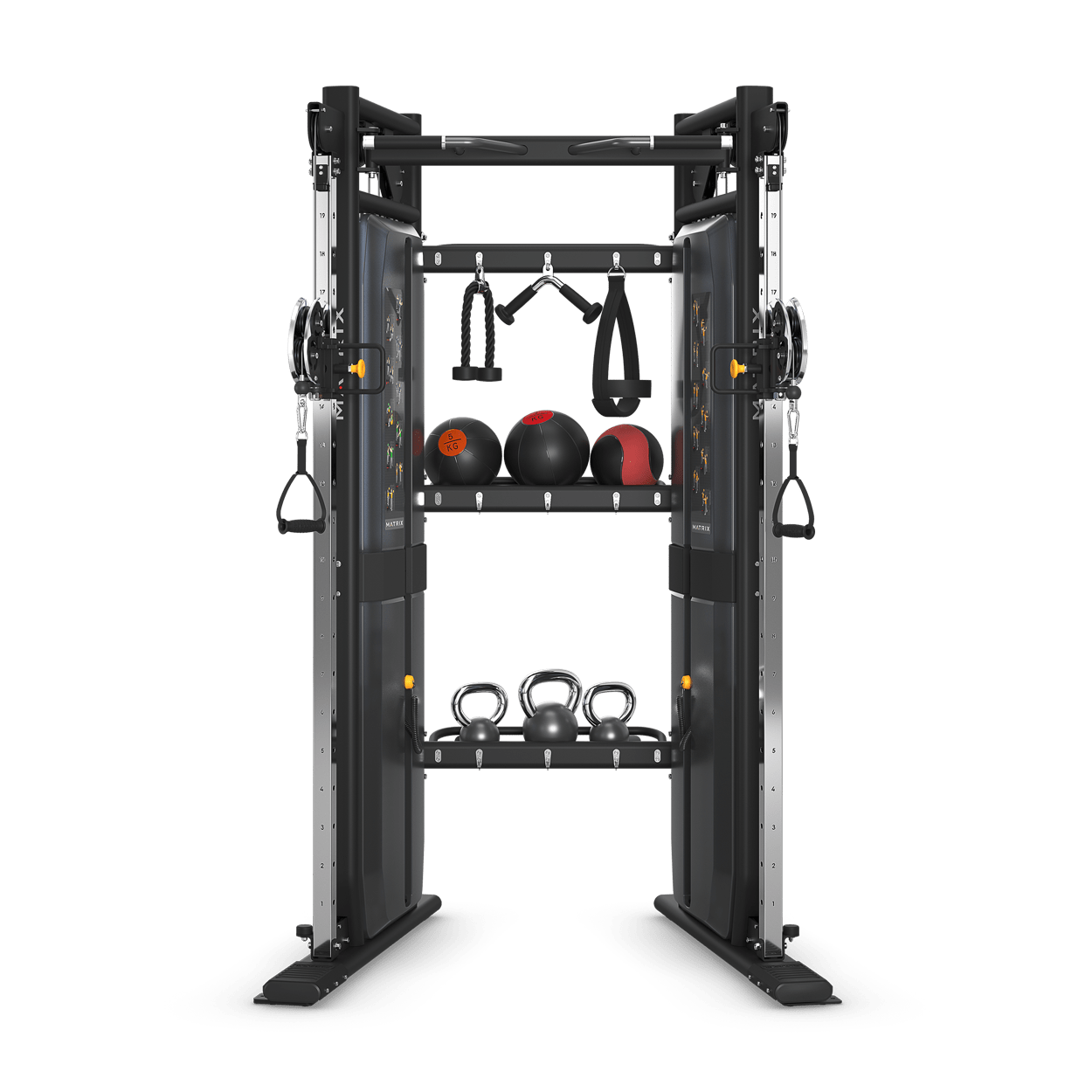The smart design of our functional trainer provides a remarkable range of exercise options in a space-saving footprint. Incremental weight adjustment and a 1:2 pulley ratio make it easy to control exercise intensity and create progressions right for everyone from deconditioned users to elite athletes. Everything about our functional trainer — from the multi-grip pull-up bar to the color-coded adjustment points to the professionally illustrated exercise placards — offers intuitive operation for users and trainers alike. Optional storage makes it easy to organize and stow accessories for instant access, and the completely enclosed design protects moving parts while creating a solid, cohesive aesthetic on your floor. A 76 cm / 30″ connection provides ample storage for functional training accessories. Options include VS-VFT60 heavy stack for an additional 27.2 kg / 60 lbs. of resistance per side, VS-FTHP handle package with four training handles (v-bar, curl bar, ropes, ankle strap) and VS-FTIW 2.2-kg / 5-lb. incremental weight.