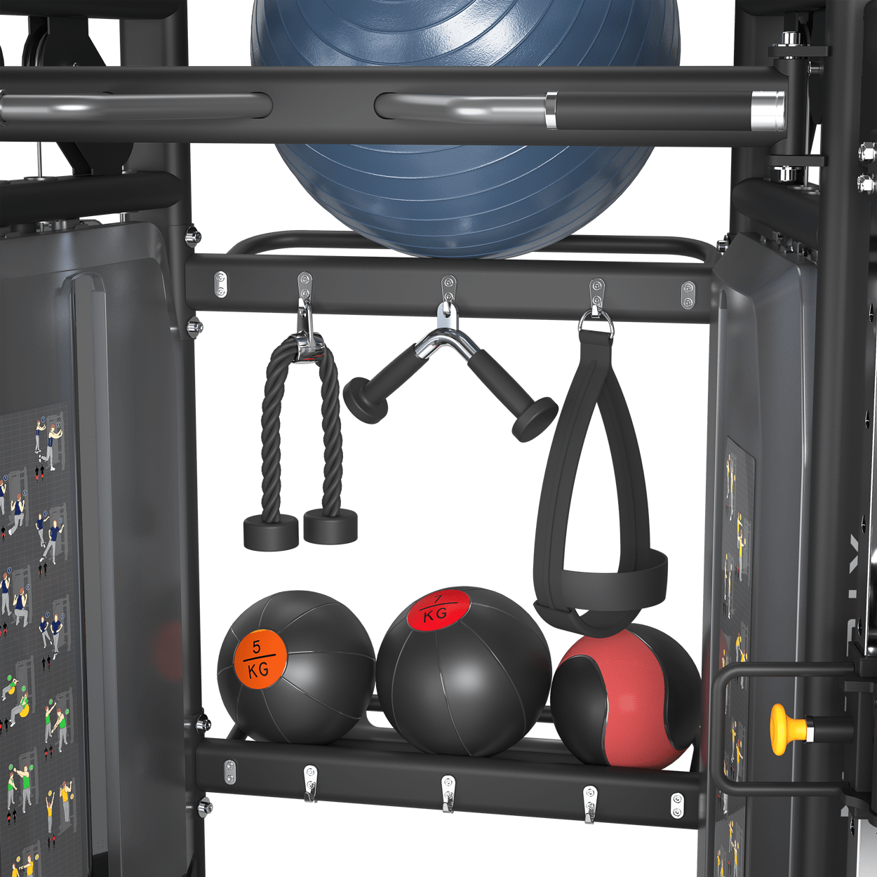 | Accessory Storage | Integrated storage for attachments, incremental weights & optional accessories |